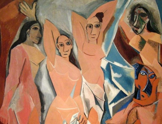 Abaixo, uma máscara da cultura Fang, observamos a ideia de simplificação das formas, ou seja, quais elementos são necessários para a confecção de um rosto. Essa ideia foi muito importante no cubismo. Logo a seguir, na tela Les Demoiselle d'Avignon, de Picasso, percebemos, nas duas figuras da direita a semelhança com as máscaras. Também, é possível notar que nas cores do quadro há a predominância de tons terrosos, outra forte referência às cores das máscaras africanas.